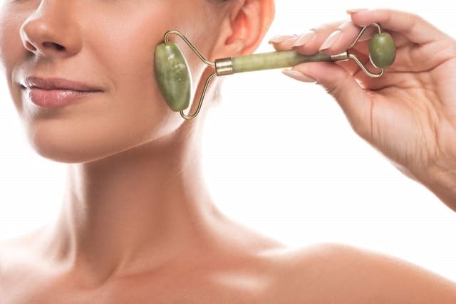 Pedra Jade: Serve para espalhar os produtos e massagear o rosto.